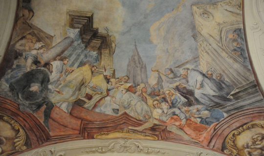 Po roce 1865 pronajala obec kostel moskevskému Slovanskému dobročinnému výboru a byl upraven k pravoslavným bohoslužbám. V té době byly zamalovány původní fresky a vznikly nové. Klášterní budovy byly roku 1897 zbourány a po roce 1904 byl z této strany kostel nově upraven v neobarokním stylu.