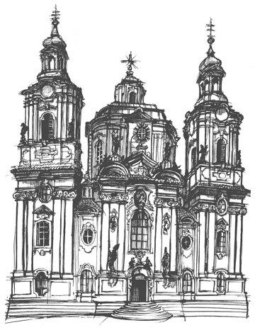 Jižní průčelí je osazeno sochami Antonína Brauna, které vytvořil do roku 1735.